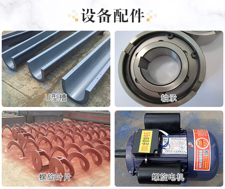 水泥螺旋輸送機其主要的配件由:螺旋葉片,電機,軸承,螺旋槽等其螺旋葉片和電機的價格比列是比較高的,螺旋葉片的材質(zhì)有三種碳鋼,錳鋼,不銹鋼三種錳鋼是耐磨的一種所以價格各上會比較貴一點。