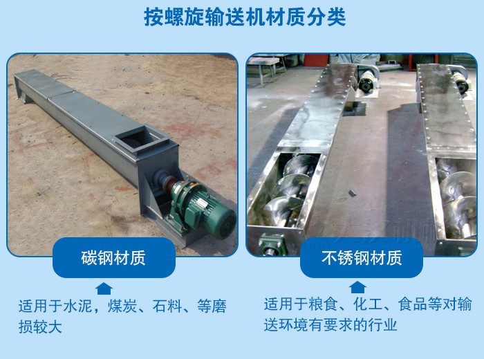 2、不銹鋼U型螺旋輸送機(jī)-主要適用于糧食、化工、食品等對(duì)輸送環(huán)境有要求的行業(yè),清潔度高,并且不會(huì)對(duì)物料產(chǎn)生污染,使用時(shí)間長,但是造價(jià)相對(duì)較高。