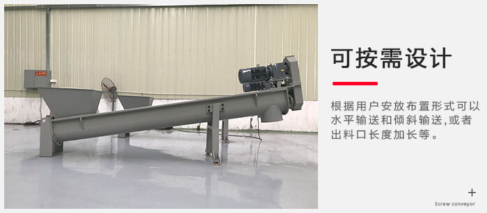 可以根據(jù)用戶安放布置形式可以水平輸送和傾斜輸送,也可以將出料口按照用戶要求的角度生產(chǎn),如出料口要求傾斜多少度,或者出料口長度加長等。