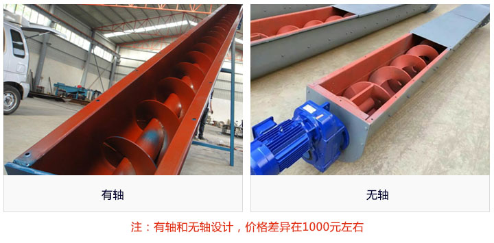 絞龍螺旋輸送機(jī)按物料屬性不同所使用的螺旋葉片不同可分有軸和無軸兩種,采用的設(shè)計(jì)理念也就不同,同種情況下,無軸的要比有軸的生產(chǎn)難度高,因此價(jià)格也會(huì)存在1000元左右的偏差。