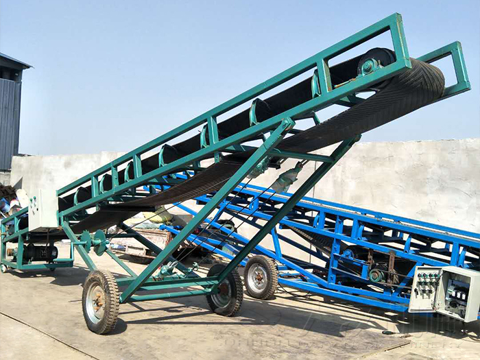 移動式皮帶輸送機是一種工效高,使用,機動性好的連續輸送裝卸設備。主要用于裝卸地點經常變更動的場所,如:港口、碼頭、車站、煤場、倉庫、建筑工地、沙石料場、農場等,用來短途運輸及裝卸散料或單件重量100公斤以下的成件物品。DY型移動式膠帶輸送機分為可升降型及不可升降型兩大類,輸送帶的運行靠電動滾筒驅動,整機的升降與運行均為非機動。如何解決移動式皮帶輸送機皮帶跑偏的問題: 移動式皮帶輸送機選型及防止皮帶跑偏鏈接地址:http://m.dcdl.net.cn/News/62.html 移動式皮帶輸送機適用用于運輸易散落的粉狀、粒狀、小塊狀、糊狀及液態狀物料,使用范圍廣,占地面積小,輸送量大效率高,在選擇時主要看三個方面,在基帶、隔板和裙邊。 基帶:作業時基帶主要承受拉力,對其使用效果起著重要作用,如果剛性小,則使輸送帶產生橫向變形,引起撒料等現象。一般要求芯層數至少6層以上。 解決移動式皮帶跑偏 移動式皮帶擋邊長期與轉彎壓帶輪、立輥與基帶之間嚴重摩擦,造成皮帶在較短工作時間后即發生擋邊磨損破裂和基帶撕裂現象,大大降低了波狀擋邊皮帶的使用壽命。過去防止皮帶跑偏的主要措施是靠立輥控制基帶保證皮帶位置來實現,這樣轉彎壓輪至少一邊與皮帶擋邊接觸摩擦,造成皮帶逐漸磨損破裂。在波狀擋邊皮帶的空邊上增加2條經整體硫化的導向三角帶,在轉彎壓帶輪上加工一條相應的導向槽,通過導向三角帶與導槽的嵌合確保皮帶擋邊不與轉彎壓帶輪直接接觸。在機身中段設置多個帶導向槽的小壓帶輪限制皮帶跑偏,廢除了立輥,避免了因立輥與基帶兩側邊擠壓而造成基帶撕裂,保證了基帶的完好,提高了皮帶和整機的使用壽命