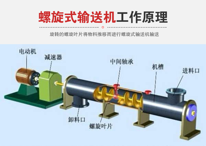 螺旋式輸送機是一種利用電機帶動螺旋回轉,推移物料以實現輸送目的的機械。