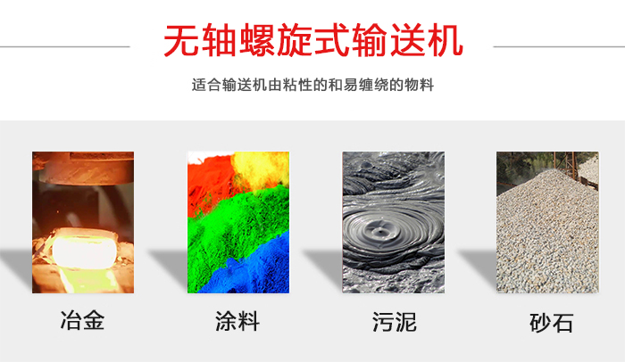 有軸螺旋式輸送機適用于無粘性的干粉物料和小顆粒物料.(例如:水泥、粉煤灰、石灰、糧等)而無軸螺旋式輸送機適合輸送機由粘性的和易纏繞的物料。(例如:污泥、生物質、垃圾等)