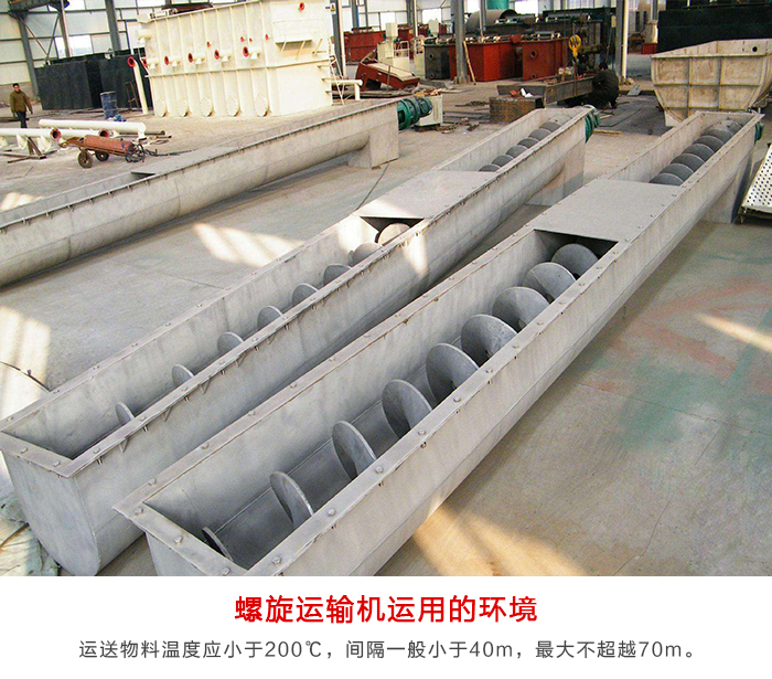 螺旋運輸機運用的環境溫度通常為-20~50℃;其中,水平型螺旋運輸機,其運送物料溫度應小于200℃;運送機傾角β一般應小于20°;運送間隔一般小于40m,不超越70m。筆直型螺旋運輸機,其運送物料溫度一般不大于80℃,筆直提高高度不超越8m。 鑒于螺旋運輸機的應用規模及功用特色,用戶在選型時,應根據運用環境及運送物料狀況充分考慮、顧全大局、合理選定,以避免不必要的麻煩和丟失。