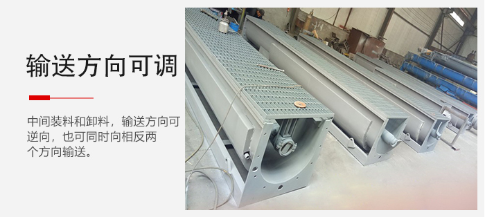 2、中間裝料和卸料,輸送方向可逆向,也可同時向相反兩個方向輸送;
